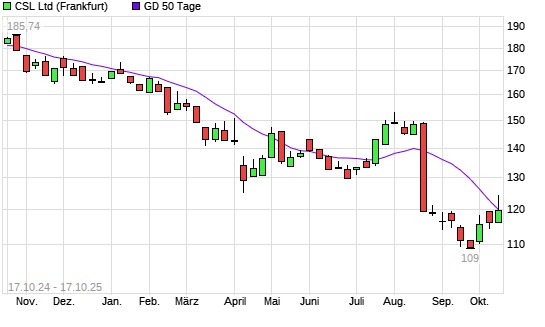 Mit dem Anstieg auf 121,20 EUR hat die CSL-Aktie am 16.10.2025 die 50-Tage-Linie nach oben gekreuzt.
