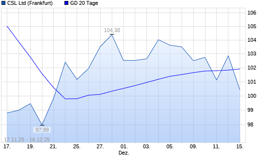Mit dem Rücksetzer auf 100,42 EUR hat die CSL-Aktie am 15.12.2025 die 20-Tage-Linie nach unten gekreuzt.