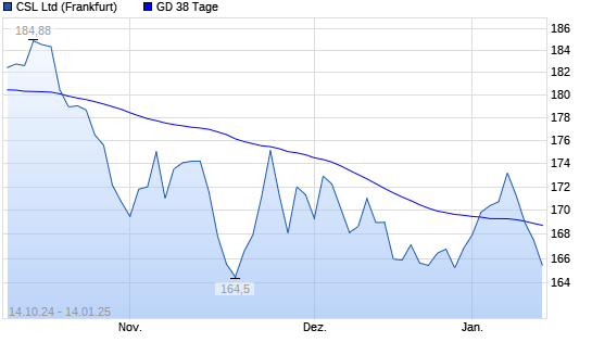 Mit dem Rücksetzer auf 167,52 EUR hat die CSL-Aktie am 13.01.2025 die 38-Tage-Linie nach unten gekreuzt.