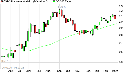 Mit dem Anstieg auf 0,98 EUR hat die CSPC Pharmaceutical Group-Aktie am 05.03.2026 die 200-Tage-Linie nach oben gekreuzt.