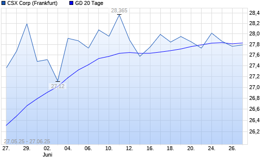 Mit dem Rücksetzer auf 27,76 EUR hat die CSX-Aktie am 26.06.2025 die 20-Tage-Linie nach unten gekreuzt.
