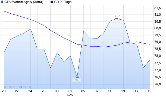 Mit dem Rücksetzer auf 78,10 EUR hat die CTS Eventim-Aktie am 18.11.2025 die 20-Tage-Linie nach unten gekreuzt.