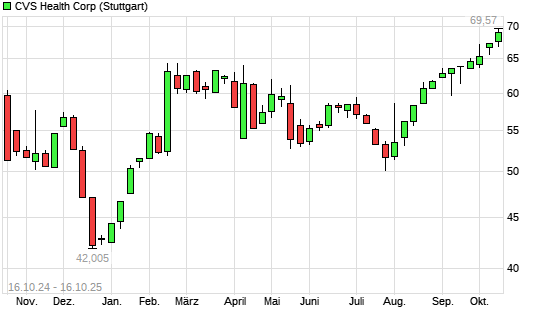 Mit dem Anstieg auf 70,41 EUR hat die CVS Health-Aktie (ISIN US1266501006) am 15.10.2025 ein neues 12-Monats-Hoch erreicht und damit den Kurs vom 13.10.2025 eingestellt.