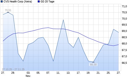 Mit dem Anstieg auf 67,77 EUR hat die CVS Health-Aktie am 26.11.2025 die 20-Tage-Linie nach oben gekreuzt.