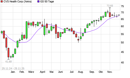 Mit dem Anstieg auf 67,74 EUR hat die CVS Health-Aktie am 24.11.2025 die 50-Tage-Linie nach oben gekreuzt.