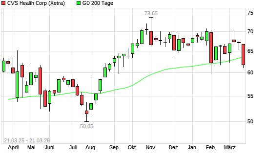 Mit dem Rücksetzer auf 61,64 EUR hat die CVS Health-Aktie am 20.03.2026 die 200-Tage-Linie nach unten gekreuzt.