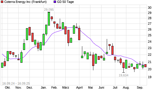 Mit dem Anstieg auf 20,68 EUR hat die Cabot Oil & Gas-Aktie am 15.09.2025 die 50-Tage-Linie nach oben gekreuzt.