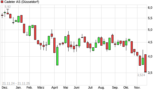 Mit dem Rücksetzer auf 3,61 EUR hat die Cadeler-Aktie (ISIN DK0061412772) am 20.11.2025 ein neues 12-Monats-Tief erreicht und damit den Kurs vom 19.11.2025 eingestellt.