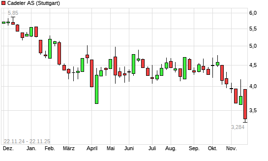 Mit dem Rücksetzer auf 3,40 EUR hat die Cadeler-Aktie (ISIN DK0061412772) am 21.11.2025 ein neues 12-Monats-Tief erreicht und damit den Kurs vom 20.11.2025 eingestellt.