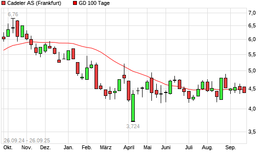 Mit dem Anstieg auf 4,54 EUR hat die Cadeler-Aktie am 25.09.2025 die 100-Tage-Linie nach oben gekreuzt.