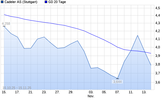 Mit dem Rücksetzer auf 3,98 EUR hat die Cadeler-Aktie am 14.11.2025 die 20-Tage-Linie nach unten gekreuzt.
