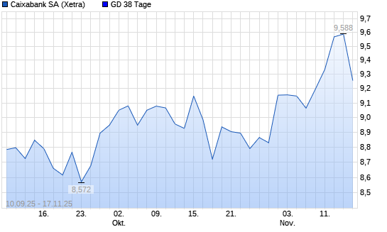 Mit dem Rücksetzer auf 8,98 EUR hat die Caixabank-Aktie am 18.11.2025 die 38-Tage-Linie nach unten gekreuzt.