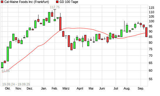 Mit dem Anstieg auf 88,80 EUR hat die Cal-Maine Foods-Aktie am 18.09.2025 die 100-Tage-Linie nach oben gekreuzt.