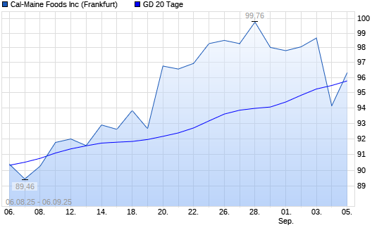 Mit dem Anstieg auf 96,30 EUR hat die Cal-Maine Foods-Aktie am 05.09.2025 die 20-Tage-Linie nach oben gekreuzt.