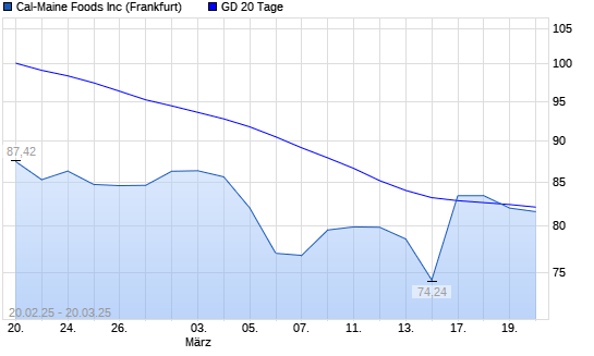 Mit dem Rücksetzer auf 81,98 EUR hat die Cal-Maine Foods-Aktie am 19.03.2025 die 20-Tage-Linie nach unten gekreuzt.