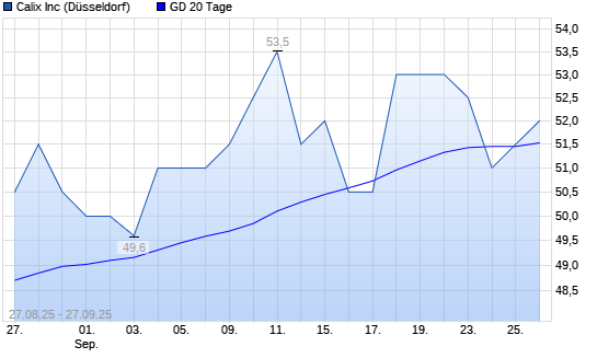 Mit dem Anstieg auf 52,00 EUR hat die Calix-Aktie am 26.09.2025 die 20-Tage-Linie nach oben gekreuzt.
