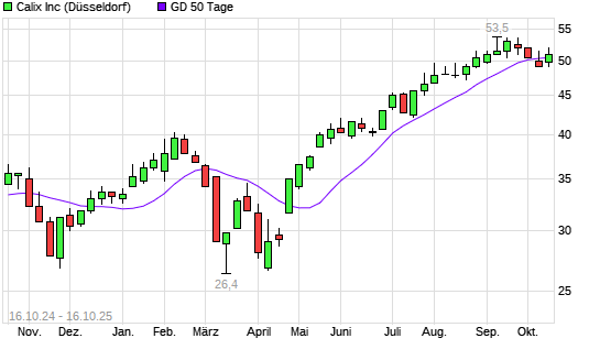 Mit dem Anstieg auf 51,00 EUR hat die Calix-Aktie am 15.10.2025 die 50-Tage-Linie nach oben gekreuzt.