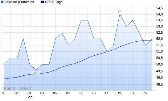 Mit dem Rücksetzer auf 51,50 EUR hat die Calix-Aktie am 25.09.2025 die 20-Tage-Linie nach unten gekreuzt.