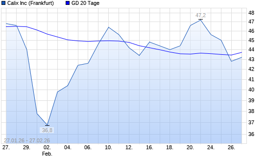 Mit dem Rücksetzer auf 42,80 EUR hat die Calix-Aktie am 26.02.2026 die 20-Tage-Linie nach unten gekreuzt.