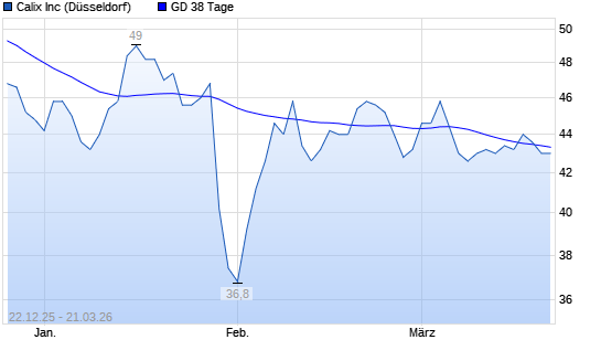 Mit dem Rücksetzer auf 43,40 EUR hat die Calix-Aktie am 20.03.2026 die 38-Tage-Linie nach unten gekreuzt.