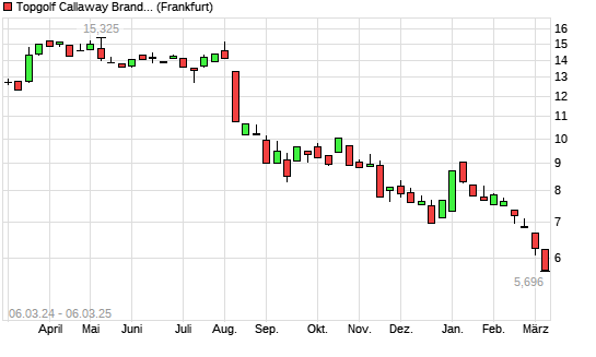 Mit dem Rücksetzer auf 5,75 EUR hat die Callaway Golf Company-Aktie (ISIN US1311931042) am 05.03.2025 ein neues 10-Jahres-Tief erreicht und damit den Kurs vom 18.03.2020 eingestellt.