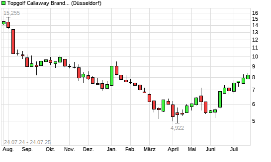 Mit dem Anstieg auf 8,20 EUR hat die Callaway Golf Company-Aktie (ISIN US1311931042) am 23.07.2025 ein neues 6-Monats-Hoch erreicht und damit den Kurs vom 18.07.2025 eingestellt.