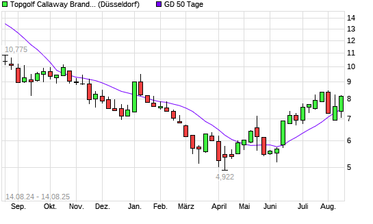 Mit dem Anstieg auf 7,45 EUR hat die Callaway Golf Company-Aktie am 13.08.2025 die 50-Tage-Linie nach oben gekreuzt.