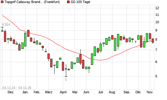 Mit dem Rücksetzer auf 7,77 EUR hat die Callaway Golf Company-Aktie am 03.11.2025 die 100-Tage-Linie nach unten gekreuzt.