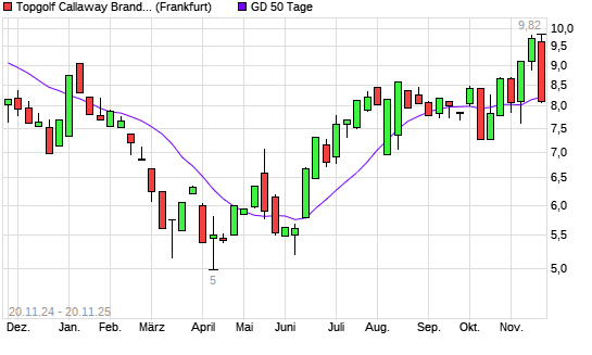 Mit dem Rücksetzer auf 8,12 EUR hat die Callaway Golf Company-Aktie am 19.11.2025 die 50-Tage-Linie nach unten gekreuzt.