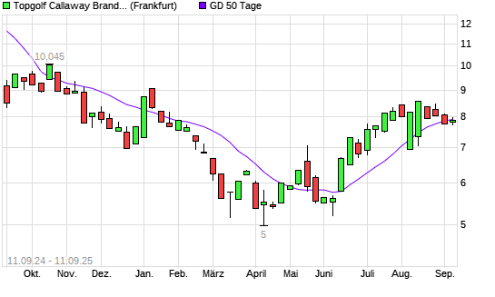 Mit dem Rücksetzer auf 7,73 EUR hat die Callaway Golf Company-Aktie am 10.09.2025 die 50-Tage-Linie nach unten gekreuzt.Die Callaway Golf Company-Aktie befindet sich seit dem 05.08.2025 ...weiterlesen