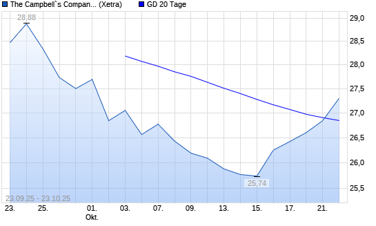 Mit dem Anstieg auf 27,33 EUR hat die Campbell Soup Company-Aktie am 22.10.2025 die 20-Tage-Linie nach oben gekreuzt.
