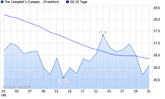 Mit dem Rücksetzer auf 25,70 EUR hat die Campbell Soup Company-Aktie am 30.10.2025 die 20-Tage-Linie nach unten gekreuzt.
