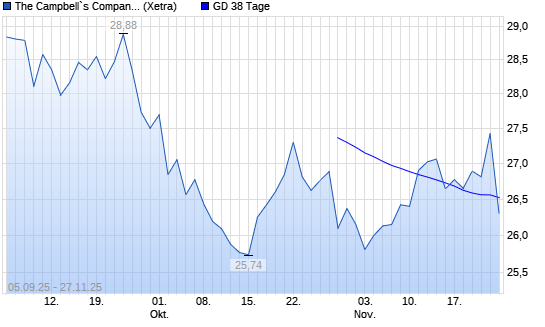 Mit dem Rücksetzer auf 26,16 EUR hat die Campbell Soup Company-Aktie am 26.11.2025 die 38-Tage-Linie nach unten gekreuzt.