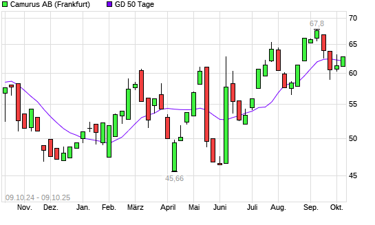 Mit dem Rücksetzer auf 62,00 EUR hat die Camurus Ord Shs-Aktie am 08.10.2025 die 50-Tage-Linie nach unten gekreuzt.