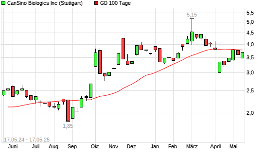 Mit dem Anstieg auf 3,81 EUR hat die CanSino Biologics-Aktie am 16.05.2025 die 100-Tage-Linie nach oben gekreuzt.