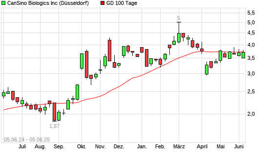 Mit dem Anstieg auf 3,79 EUR hat die CanSino Biologics-Aktie am 04.06.2025 die 100-Tage-Linie nach oben gekreuzt.