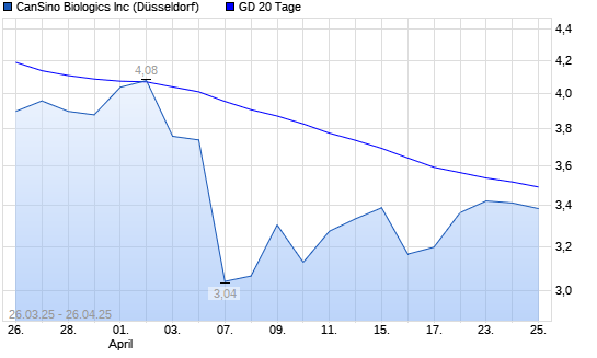 Mit dem Anstieg auf 3,49 EUR hat die CanSino Biologics-Aktie am 25.04.2025 die 20-Tage-Linie nach oben gekreuzt.