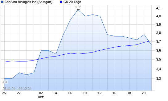 Mit dem Rücksetzer auf 3,66 EUR hat die CanSino Biologics-Aktie am 23.12.2024 die 20-Tage-Linie nach unten gekreuzt.