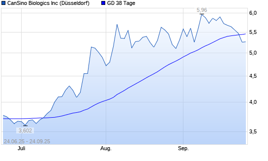 Mit dem Rücksetzer auf 5,38 EUR hat die CanSino Biologics-Aktie am 23.09.2025 die 38-Tage-Linie nach unten gekreuzt.