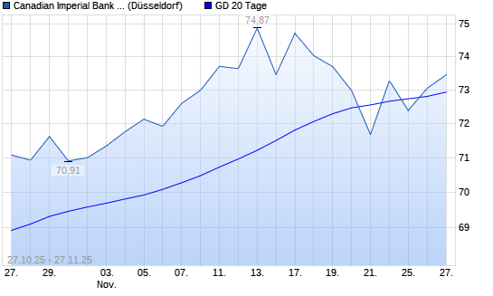 Mit dem Anstieg auf 73,08 EUR hat die Canadian Imperial Bank of Comm-Aktie am 26.11.2025 die 20-Tage-Linie nach oben gekreuzt.