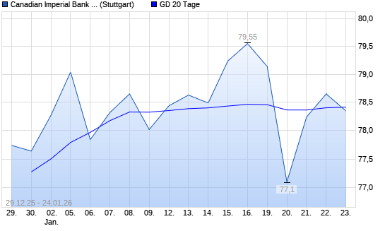 Mit dem Anstieg auf 78,41 EUR hat die Canadian Imperial Bank of Comm-Aktie am 23.01.2026 die 20-Tage-Linie nach oben gekreuzt.