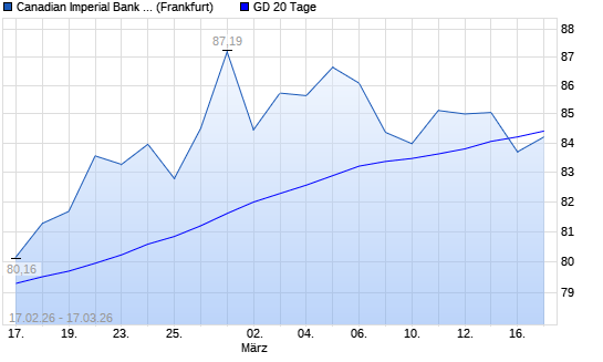 Mit dem Rücksetzer auf 83,69 EUR hat die Canadian Imperial Bank of Comm-Aktie am 16.03.2026 die 20-Tage-Linie nach unten gekreuzt.