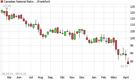 Mit dem Rücksetzer auf 86,30 EUR hat die Canadian National Railway-Aktie (ISIN CA1363751027) am 07.04.2025 ein neues 3-Jahres-Tief erreicht und damit den Kurs vom 11.03.2025 eingestellt.