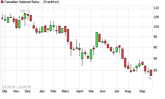 Mit dem Rücksetzer auf 78,02 EUR hat die Canadian National Railway-Aktie (ISIN CA1363751027) am 22.09.2025 ein neues 5-Jahres-Tief erreicht und damit den Kurs vom 10.09.2025 eingestellt.
