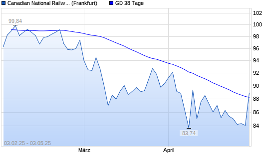 Mit dem Anstieg auf 88,94 EUR hat die Canadian National Railway-Aktie am 02.05.2025 die 38-Tage-Linie nach oben gekreuzt.