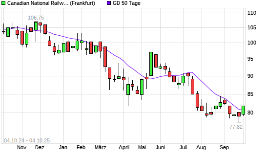 Mit dem Anstieg auf 81,76 EUR hat die Canadian National Railway-Aktie am 03.10.2025 die 50-Tage-Linie nach oben gekreuzt.