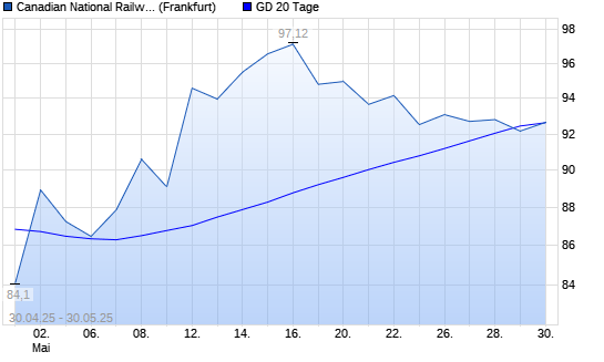 Mit dem Rücksetzer auf 92,16 EUR hat die Canadian National Railway-Aktie am 29.05.2025 die 20-Tage-Linie nach unten gekreuzt.
