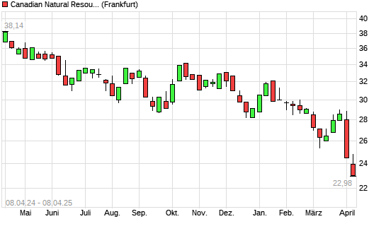 Mit dem Rücksetzer auf 24,46 EUR hat die Canadian Natural Resources-Aktie (ISIN CA1363851017) am 07.04.2025 ein neues 12-Monats-Tief erreicht und damit den Kurs vom 04.04.2025 eingestellt.