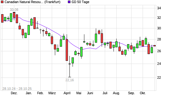 Mit dem Anstieg auf 26,99 EUR hat die Canadian Natural Resources-Aktie am 27.10.2025 die 50-Tage-Linie nach oben gekreuzt.