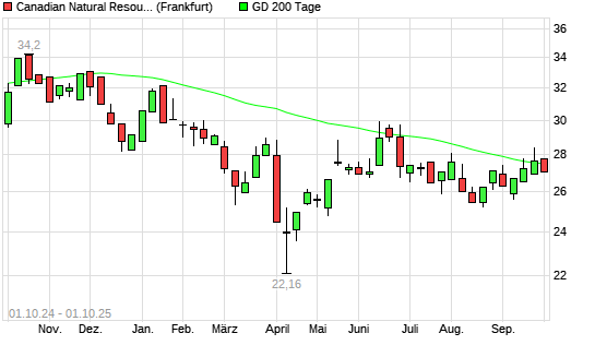 Mit dem Rücksetzer auf 27,23 EUR hat die Canadian Natural Resources-Aktie am 30.09.2025 die 200-Tage-Linie nach unten gekreuzt.